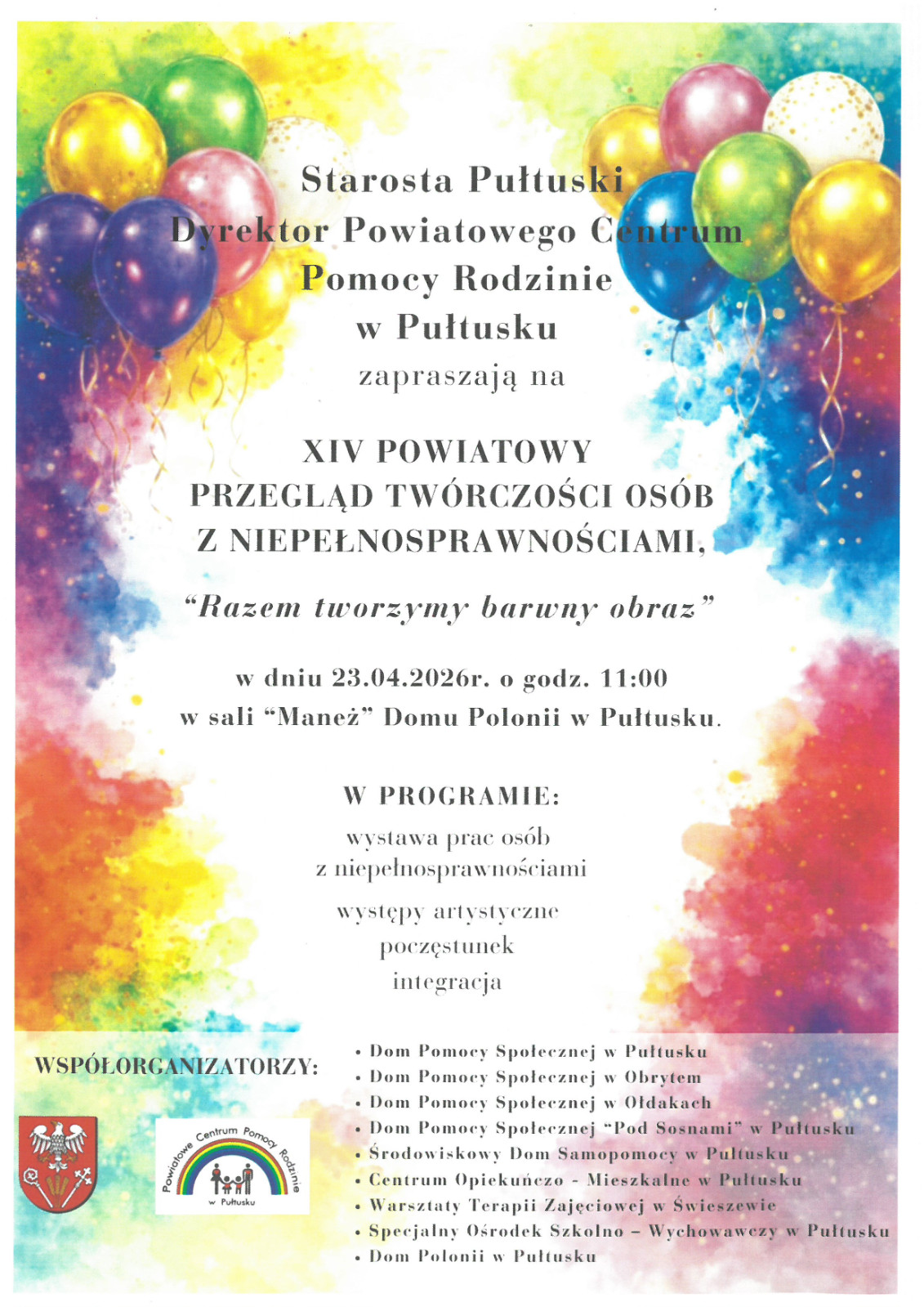 XIV POWIATOWY PRZEGLĄD TWÓRCZOŚCI OSÓB Z NIEPEŁNOSPRAWNOŚCIAMI "Razem towrzymy barwny obraz"
